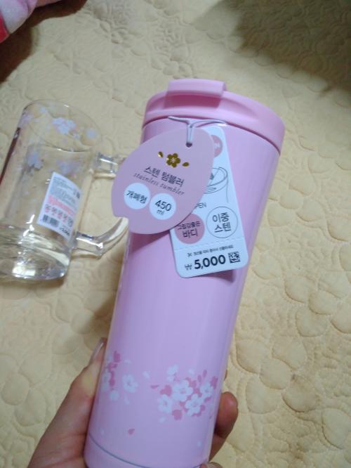 스뎅 텀블러는 분홍/흰색 있었는데. 둘다 이뻤습니다.
