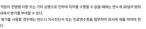 찾아보시면 아시겠지만, 병가는 원래 자기연차 다 쓰고 없을때 쓰는거에요. | ||