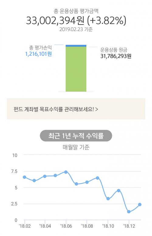 2012년에 입사해서 1년이 딱 지난 시점에 1년치 퇴직연금이 입금된 이후로 지금까지 운영중인 퇴직연금 수익율 현황입니다. 정기예금 50% 정하고 나머지는 펀드로 운영중입니다. 나날이 운용 수익률이 바닥으로 가고 있군요. ㅠㅠ