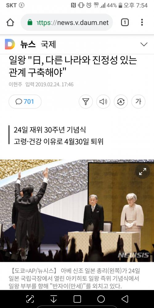 오늘날에 우리나라는 왠만해서는 사람을 대상으로 만세를 부를 일이 없다보니 일왕을 면전에 두고 만세를 외치는 아베의 모습이 참 신기하기도 하면서 낯설군요..