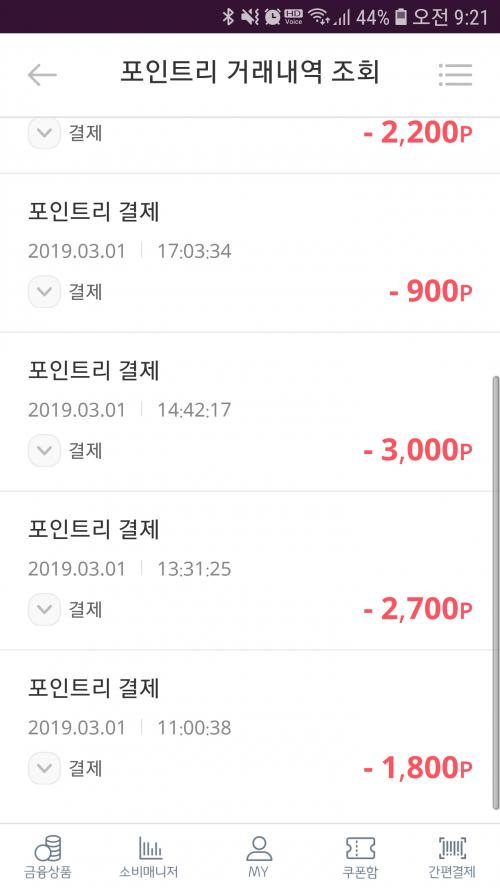 포인트 사용 내역을 첨부하여 드려요 참고하세요