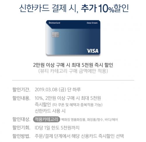 신한카드 10% 즉시할인 (2만 이상 최대 5천 할인)