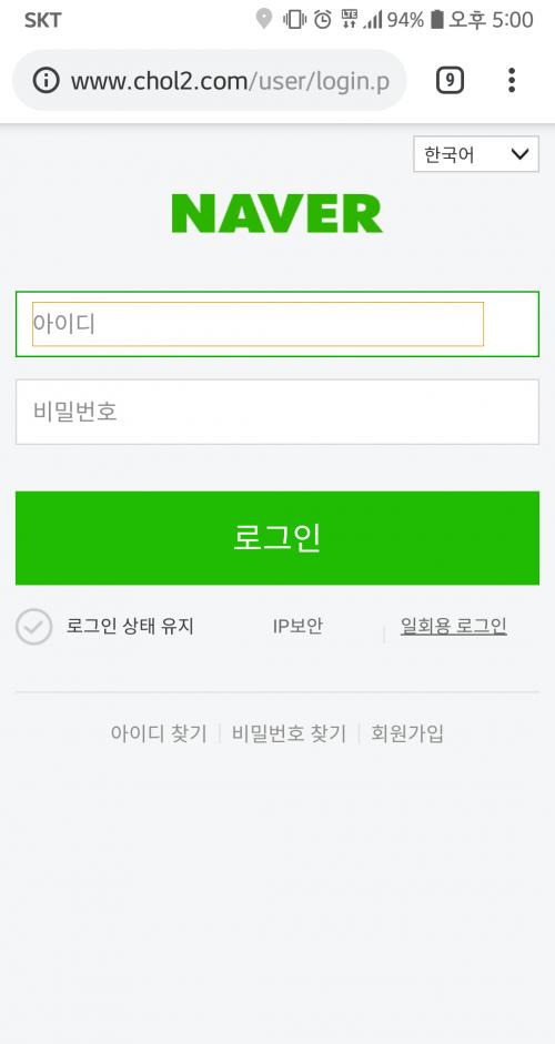 로긴하려다가 주소보니 www.chol.com 어쩌구..