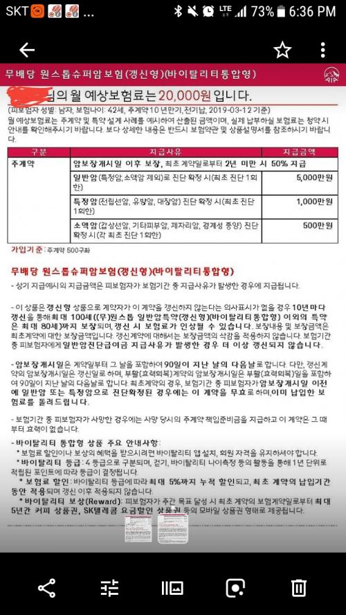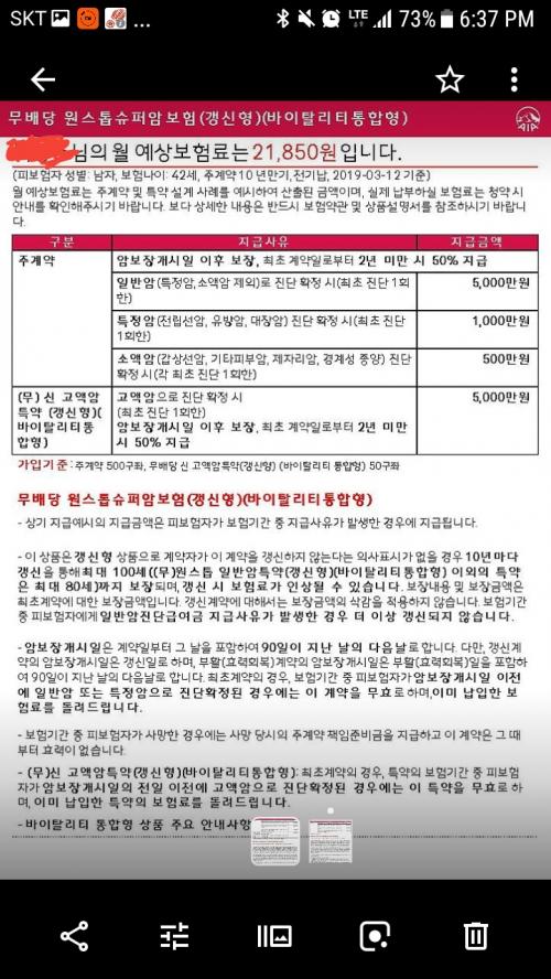 기본 2만원만 들지 특약1추가 1850원 할지 고민주은데 원래 암보험이 치료비가 아니고 1회성 지급 되나요? 십년 갱신형이고 월 만원이라 생각함 쓸만한 보험인지? 돈낭비인지 궁금합니다.