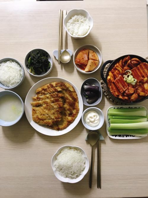 남편이 제일 좋아하는 부대찌개 와, 돈까스 준비했어요.