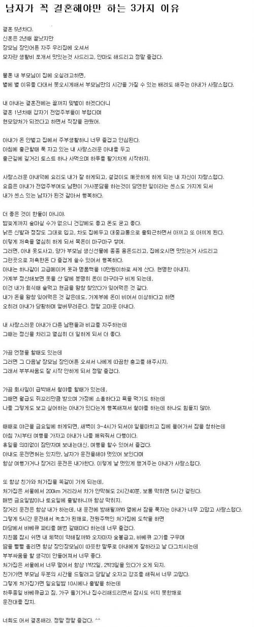 이 글을 보니 중매싸이트에 당장이라고 등록해서 결혼하고 싶어지네요 ㄷㄷ... | ||