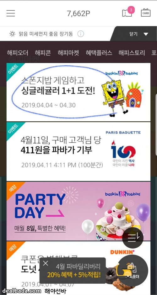 해피포인트앱에서 배스킨라빈스31 싱글레귤러 1+1 쿠폰을 선착순으로 뿌리고 있습니다.