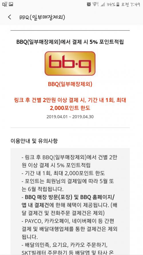 두개다 중복적용 되는지 모르겠네요 BBQ 최대 만원까지 50% 캐시백 된다고하니 드실분은 링크 받으세요 전 BBQ불매^^