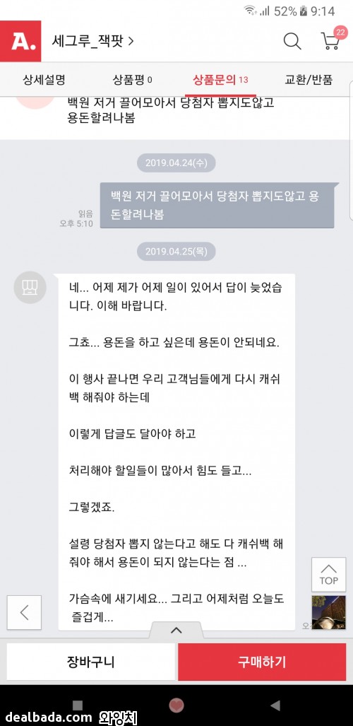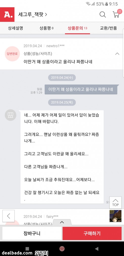 옥션들어가서 베스트에 100원딜이 올라와서 문의글이 있길래 읽다보니 왜 웃음이 나올까요.ㅎ