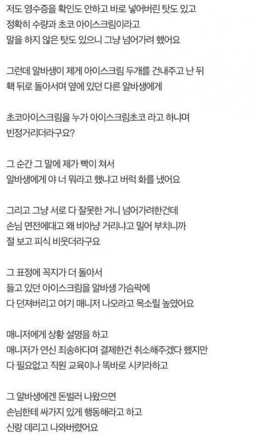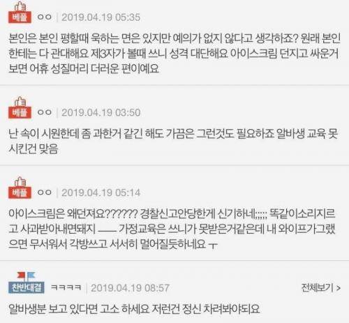 별거도 아닌데 욱해서 아이스크림를 사람한테 던진건좀... 휴 | ||
