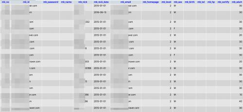 타 사이트에서는 아이디를 포함하여, 비밀번호, 이름, 주민번호, 전화번호 등등 기입된 모든 정보가 털리지만