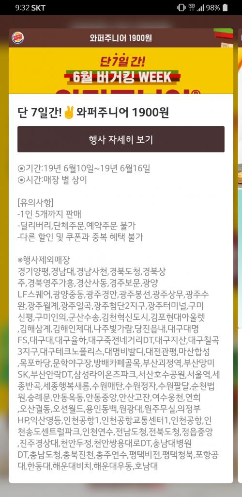 2개 같이 먹어야 배부른 와퍼주니어 1주일간 행사래요