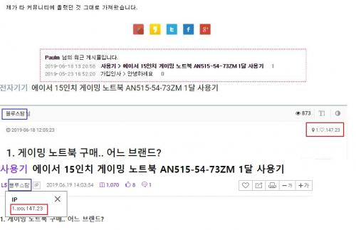 클리앙 다나와 딜바다의 블루스탐은 아이피가 같고 노트북을 팔거나 관심이 많음