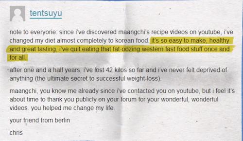 완전히 서양식의 기름진 음식을 끊고 난 후 1년반만에 42kg이 빠졌습니다"