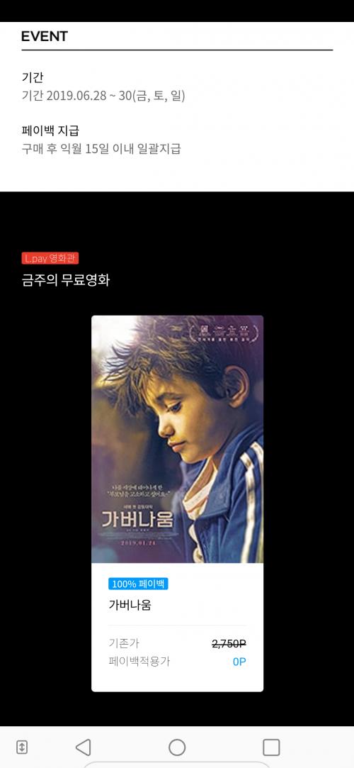 엘포인트에서 영화 가버나움 무료입니다 (포인트페이백)