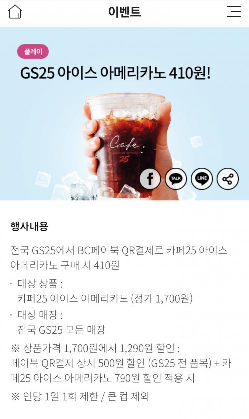 페이북 큐알 결제이벤트로 캐시백되는게 500원 / 아메리카노 상품한정 진행 이벤트로 캐시백되는 게 1잔당 790원이라는 소리죠. 790원이 카드 승인금액에서 바로 빠지는게 아닙니다. 카드 승인은 그냥 1700원으로 되는겁니다. | ||