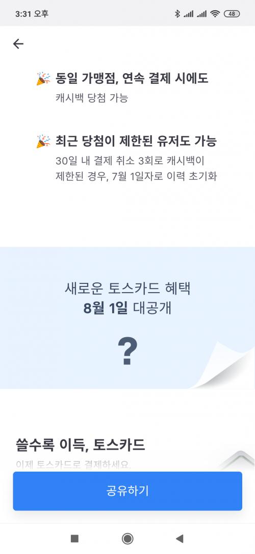 전 6/14일부터 쓰긴 했는데, 8/1일 혜택 나오는거 보고 판단 할려구요. | ||