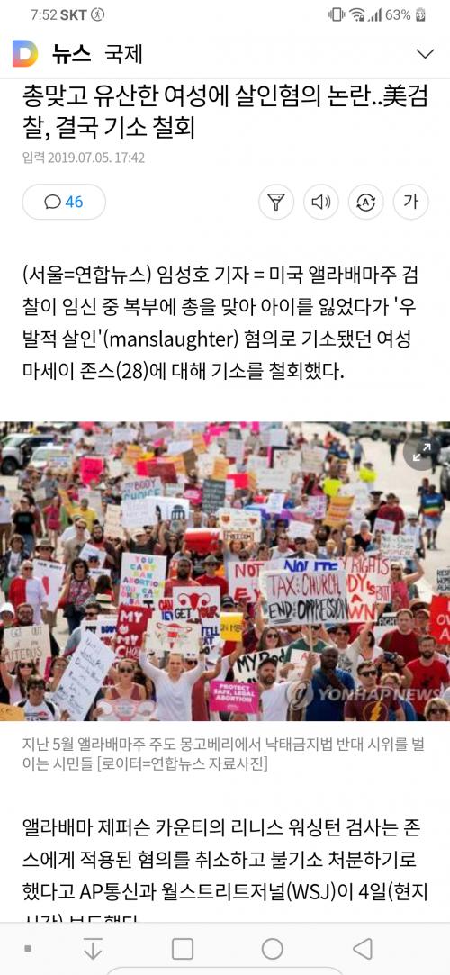 연방 검찰은 아니고 주검찰이기는 하지만 임산부가 먼저 싸움을 걸어서 상대방이 총을 쏴서 유산이 되었으니가 싸움을 건 사람이 의도적으로 아이를 죽일 목적을 가졌다는 사고가 가능하다는게 참으로 놀랍네요..