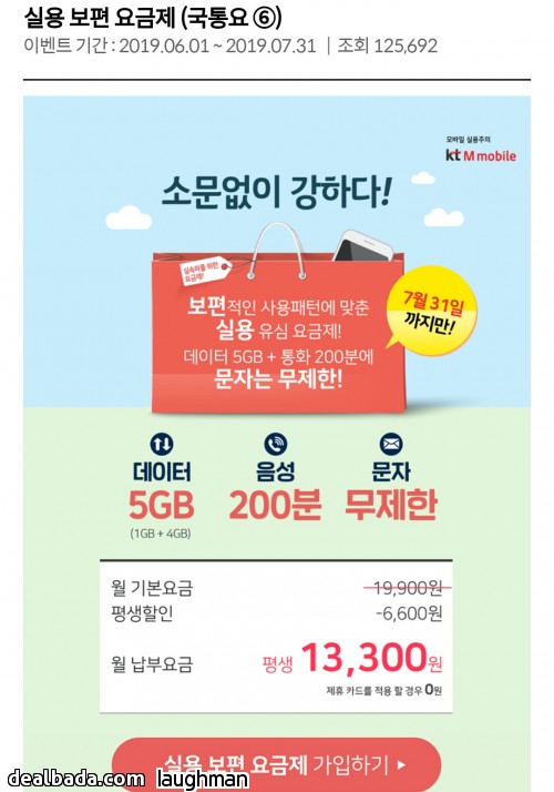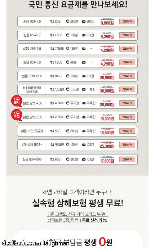 kt엠모바일 일부 요금제 가입 이벤트 생겼네유 > 자유게시판