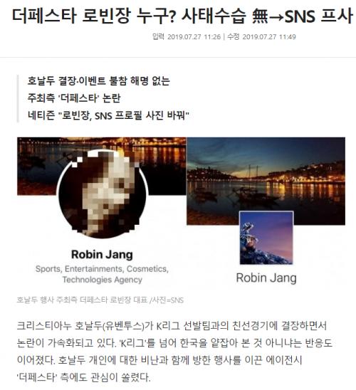 웃긴건 저 장로빈(영아)라는 사람 발언보면 유벤투스와의 매치를 저 회사가 매달린게 아니라,