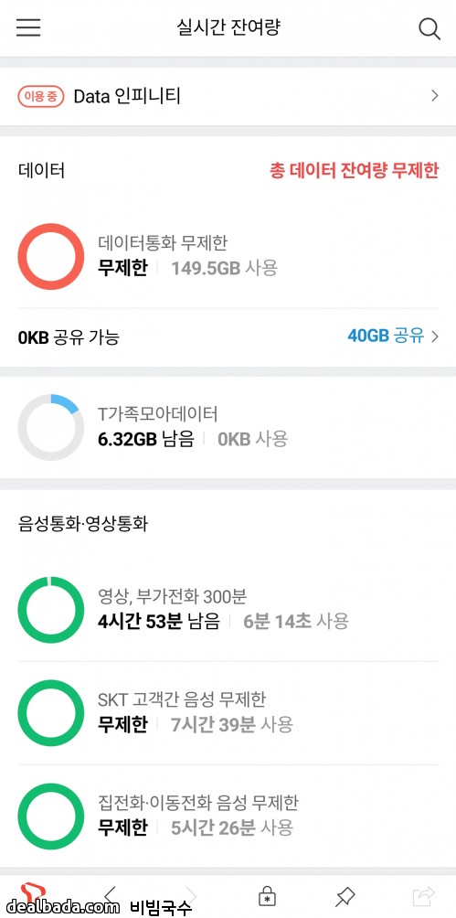 와 엄청난 데이터 사용량이네요! 전 6G도 다 못쓰는데요. | ||