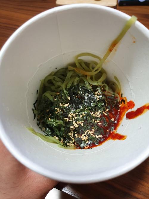 너무 배고파서 야식 먹어요 곤약 누들인데