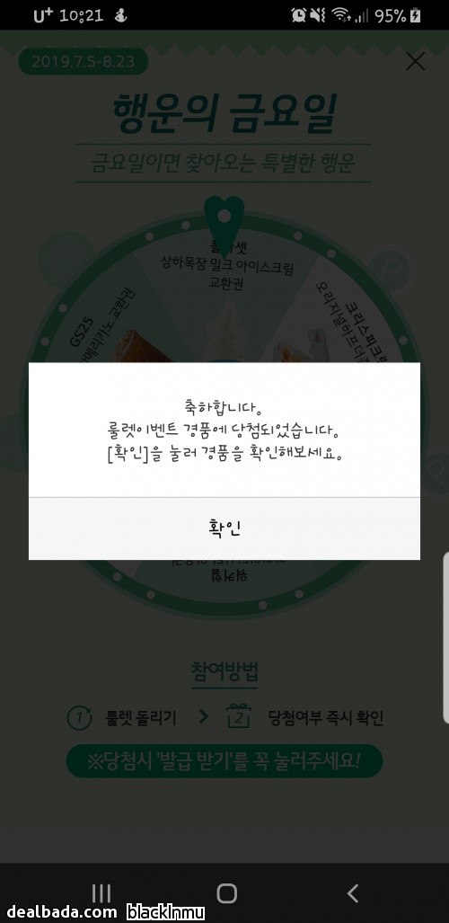 어! 저 오늘 처음으로 두계정 모두 당첨되었네요.