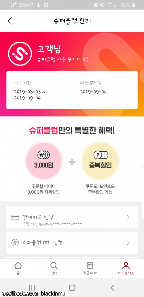 4900원으로 이제가입 못하는데..두번만 시켜도 이득이예요 ㅋㅋ | ||