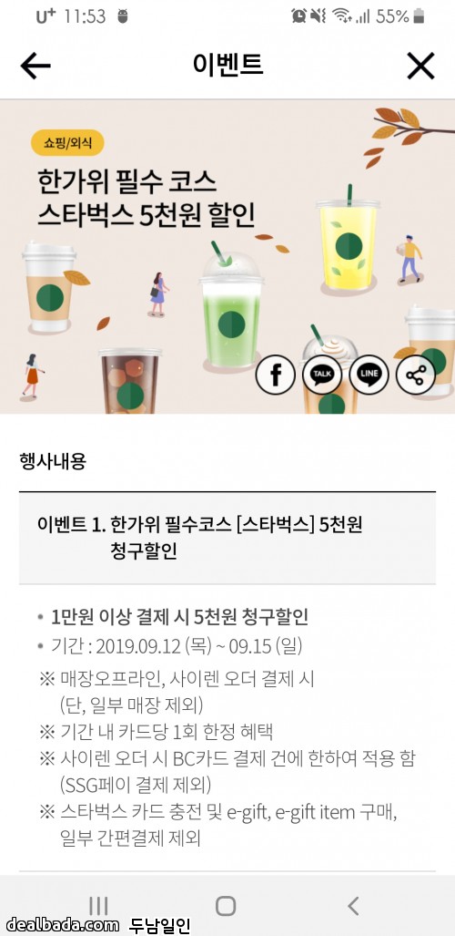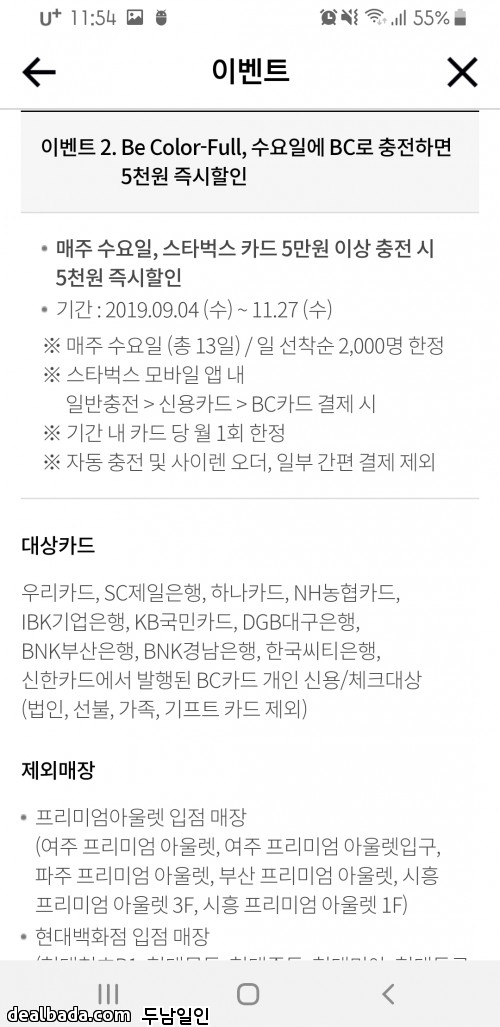 스타벅스 가실 분들은 비씨카드 챙기세요.