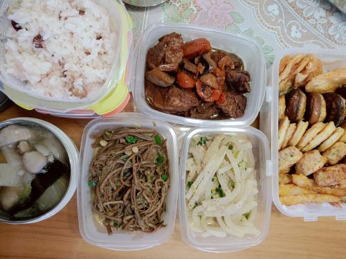 오늘 점심 드시게 하려고 어제 퇴근후 거의 밤새 준비했어요. | ||