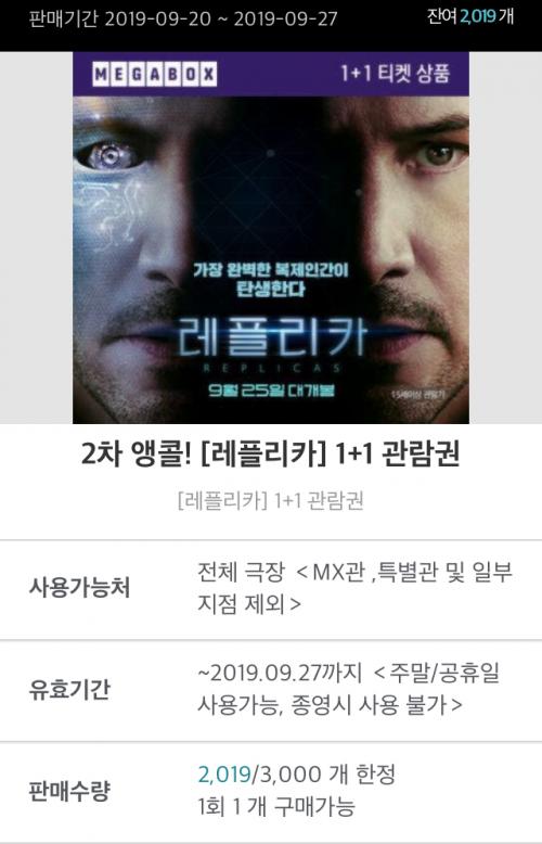 메가박스> 레플리카 1+1 열려있네요