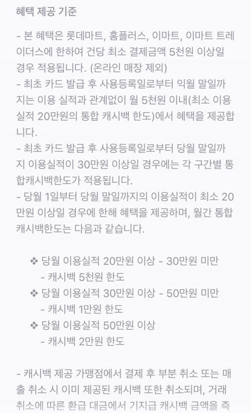 전월실적 개념이 아니라 당월에 쓴 금액으로 캐시백 혜택을 받는 것 같네요.