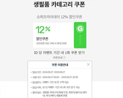 12% 할인쿠폰 (1만 5천 이상 최대 5천 할인)