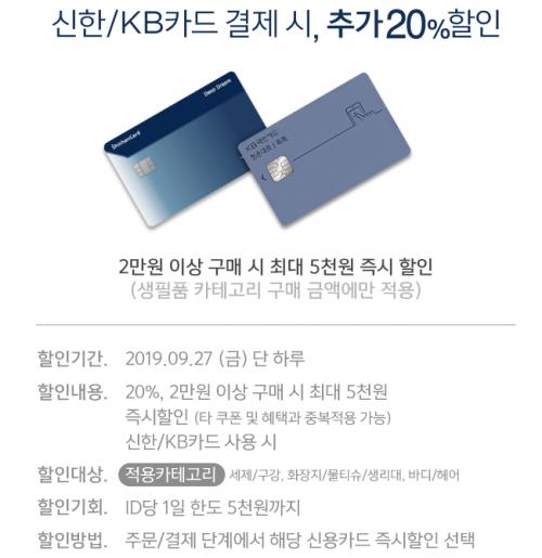 신한/국민카드 20% 즉시 할인 (2만 이상 최대 5천 할인)