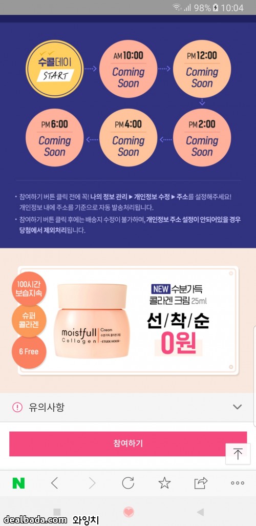 2시간마다 하는데 전 10시 딱 되자마자 눌렀는데 마감됐다고 나왔어요.