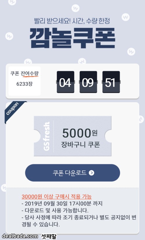 매주 5천/3만 주는데 양곡 제외라 안 썼는데 이건 양곡 적용이네요.