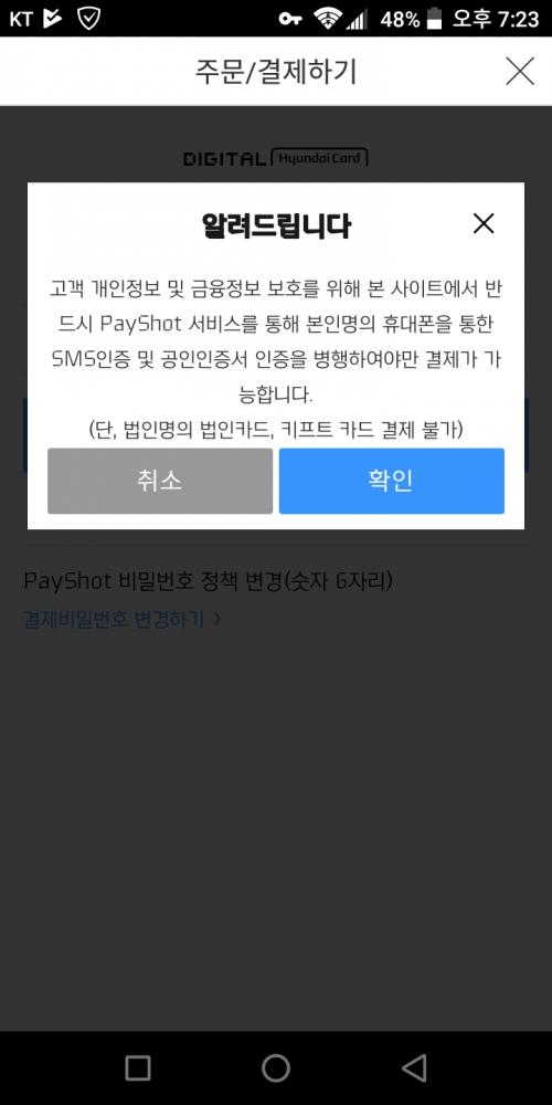 아이고 폰에 공인인증서 한번도 깔아본적이 없어 복잡할듯해 현대카드 결제는 포기해야겠네요/ | ||