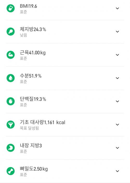 저기서 '변화되는 수치'를 믿어야지 저 수치를 그대로 믿을 수는 없어요 저도 다이어트와 운동 하면서 변화되는 수치를 보았고 헬스장에 있는 인바디와 차이는 조금 있었지만 '변화하는 수치'참고용으로는 좋아요 | ||