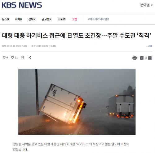 KBS도 조선 따라하기 하는지 뜬금없이 수도권이라는 표현을 쓰면서 일본으로 향하고 있는 태풍 기사를 냈네요. 도쿄라고 써야할 것을 다 자르고 수도권이라고 기사를 낸다는거 자체가 너무 당황스럽네요.