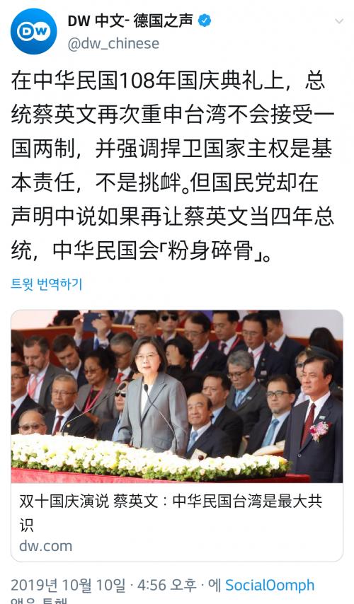 108주년 대만 국경절들 맞가 차이잉원 총통이