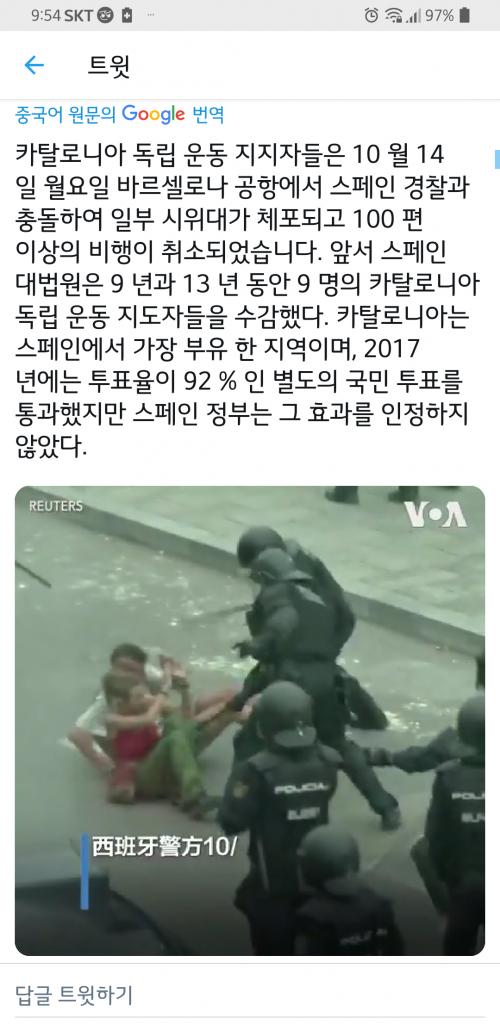 스페인 카탈루냐 독립시위가 현재진행형이네요.