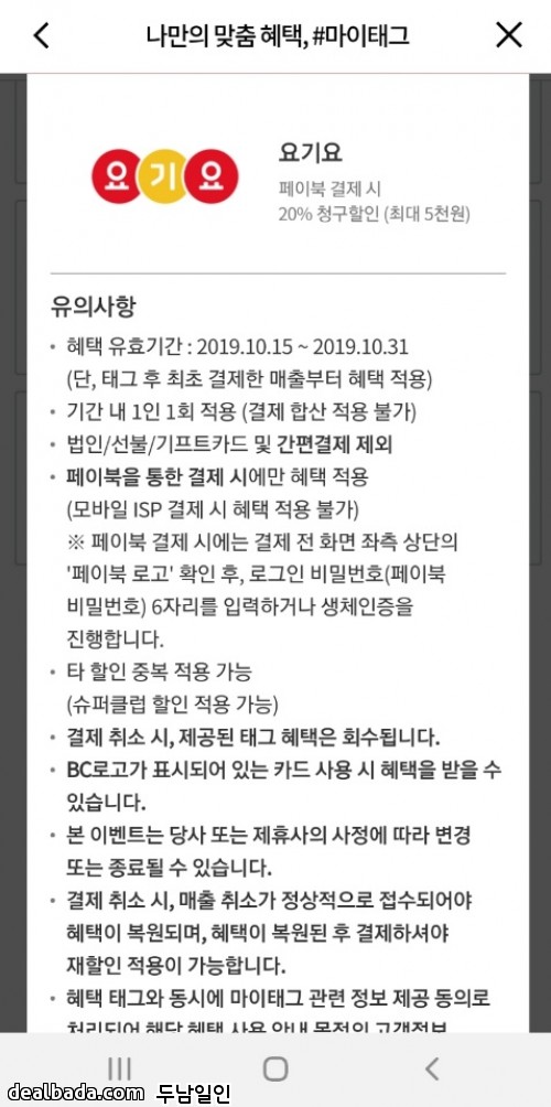 오늘 요기요 결제 하시는 분은 괜찮네요.ㅋ(꼭 신용카드결제하기에서 비씨카드 선택 후 페이북 결제 하셔야 합니다.)