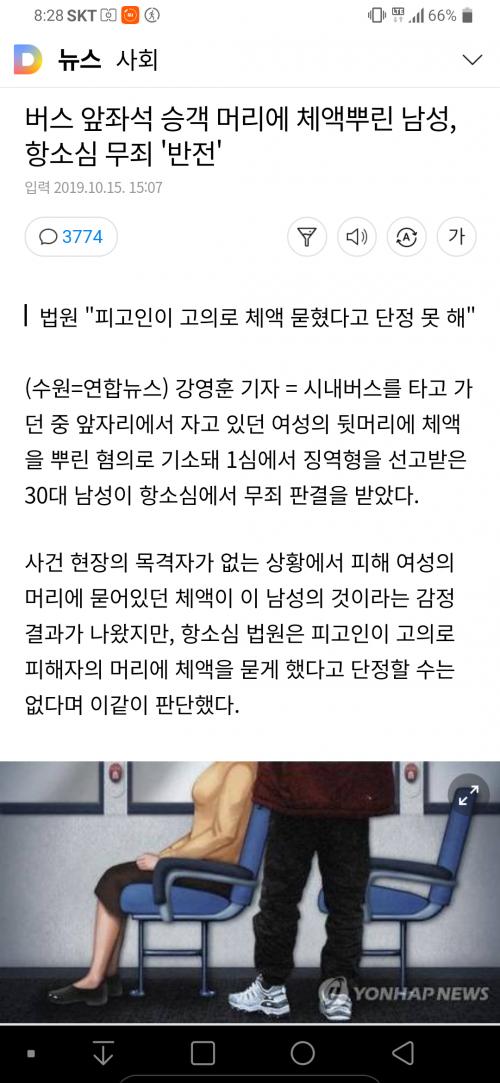 기사를 보니 참 아니러니한 일이군요. 피고는 음란행위를 안했는데 그여자의 머리에 정액을 뿌렸다.