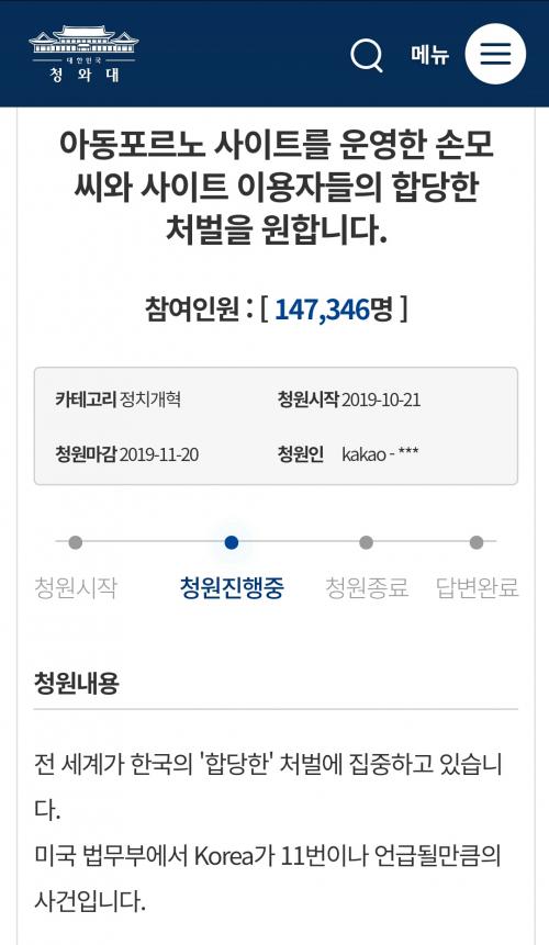 저도 진작에 청원동의하고왔네요 형벌이 미국이랑 비교되더군요 ㅋㅋ | ||