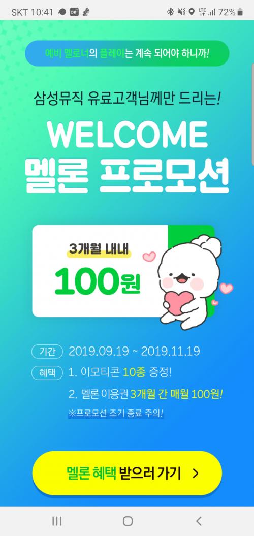 아뇨 다른 멜론이벤트들은 한달의무사용이 대부분이었는데 이건 3달째 취소가능합니다. | ||