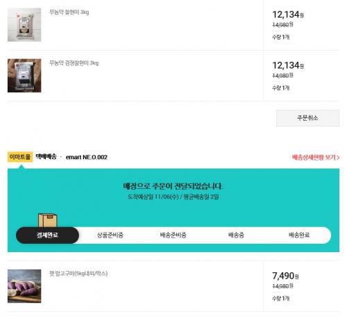 한번에 결제했는데, 택배배송 상품들이 있어서 세번 나눠서 올 것 같아요.
