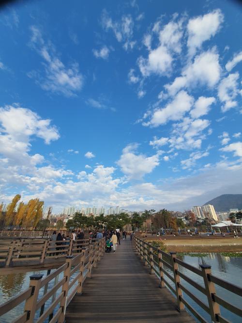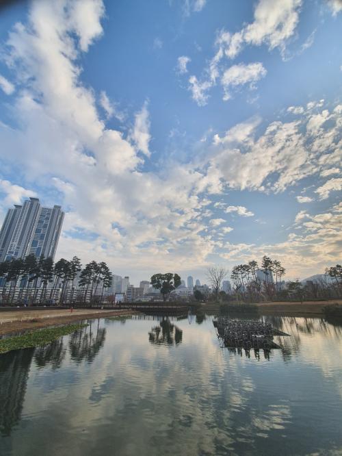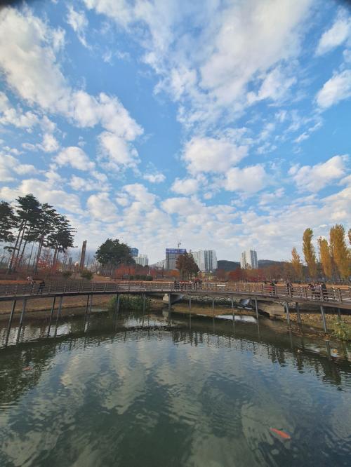 공원에 도착했을땐 먹구름이 많았는데 점점 구름이 걷혀서 하늘이 파랗게 나왔네요. | ||