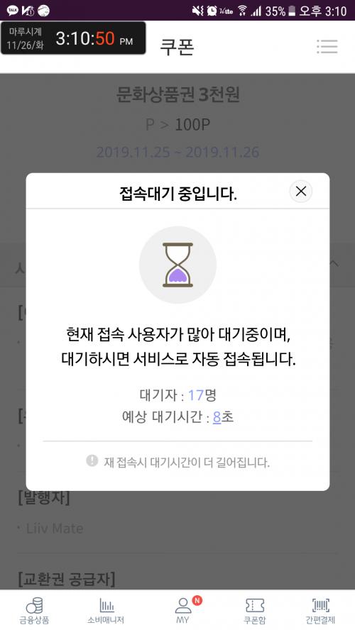 우연치 않게 3시 10분에 들어가는데 왜 이리 대기자가 많나 했더니 문상이 열려있길래 눌러서 대기 기다리고 구매하기 누르고 비번 입력하니 판매가 종료... 뒤로갔다 들어갔다 해도 잔여수량 20으로 뜨던데...