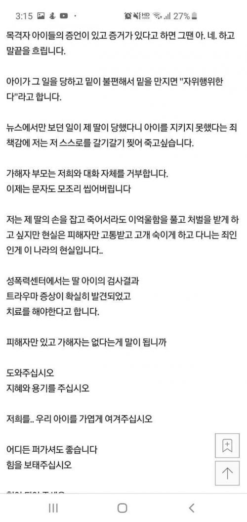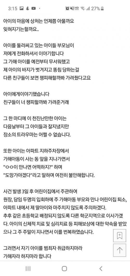 가해자 부모는 왜 항상 저럴까요... 늘 이 말을 하게 되네요... "애는 뭘 모르고 그럴 수 있어. 근데 부모 니가 그러면 안되지" | ||