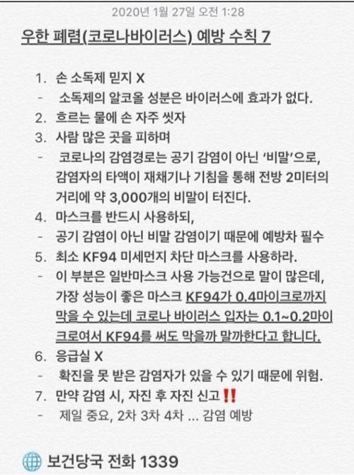 카페에서 퍼온 내용인데 아래 보건당국 전화번호도 적혀있어서 신빙성있는 것 같아 가져왔어요.